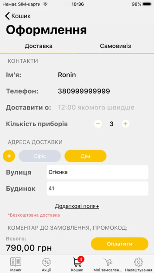 • встановити бажаний час доставки замовлення за вказаною адресою;