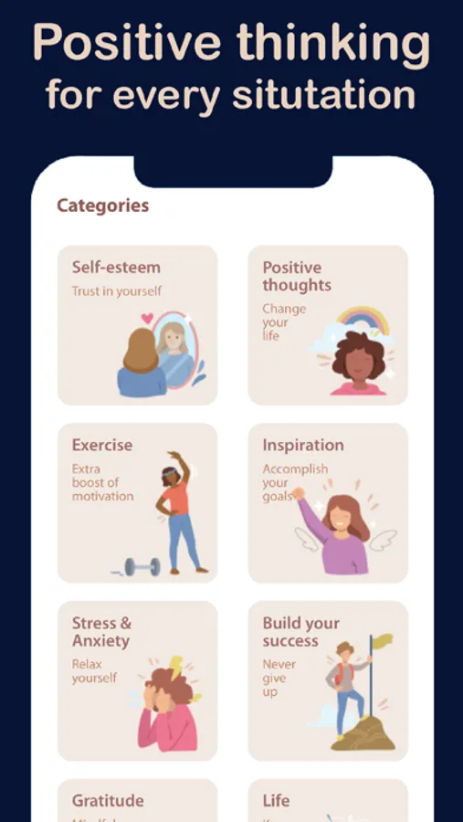 The app consists of three main sections. The daily reminders that are the things to do daily, in the form of a morning routine, for a happier, more productive life. The second section, in the form of hashtags, is composed of quick quotes in order to make you feel better. You can also learn to practice different breathing techniques. And finally get access to quotes, affirmations on 14 types of categories; self-esteem, gratitude, positive thoughts, exercise, inspiration, success, stress & anxiety, gratitude, life, motivation, new year, love, wisdom, science, self love, intelligence...