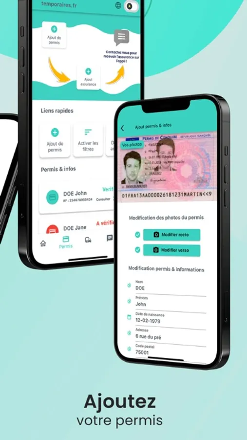 1ere étape : Ajoutez votre permis sur l'app (photos recto et verso) + ses infos.
