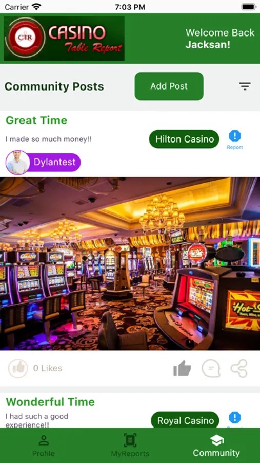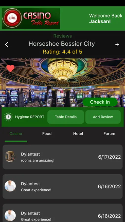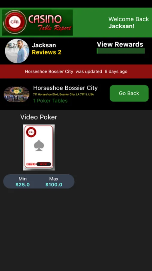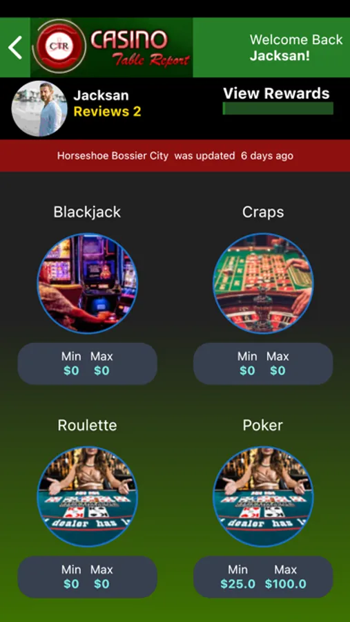 A app used to review casino hotels, food, overall casino, and users can see the table games and minimum and maximum bets live.