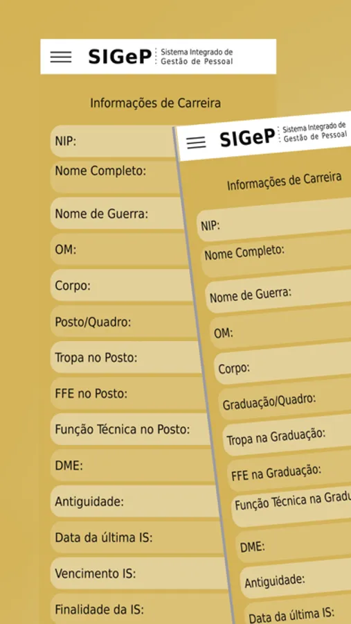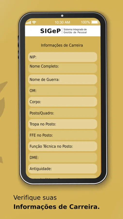 SIGeP Mobile fornece um extrato das principais informações de carreira do militar.