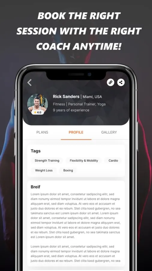 Coaches are free to create their own offerings and make them available to clients via their in-app profile.