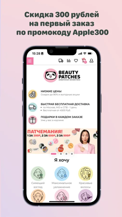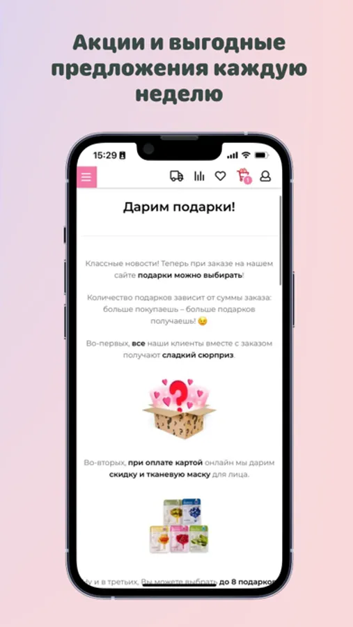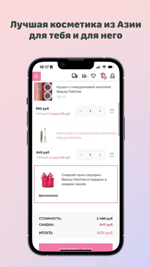 Скачивай приложение и добавляй в корзину косметику по самым привлекательным ценам.