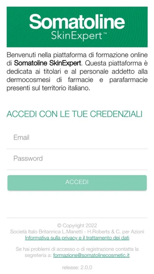 Questa piattaforma è dedicata ai titolari e al personale addetto alla dermocosmesi di farmacie e parafarmacie presenti sul territorio italiano per la formazione sui prodotti CORPO e VISO.