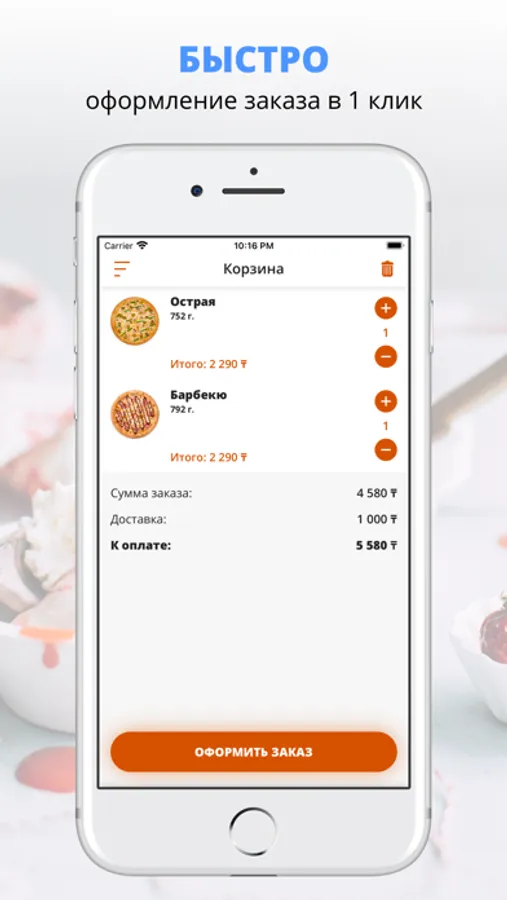 Скачивайте наше приложение, оформляйте заказ и наслаждайтесь любимой едой, где бы Вы ни были! Приятного аппетита!
