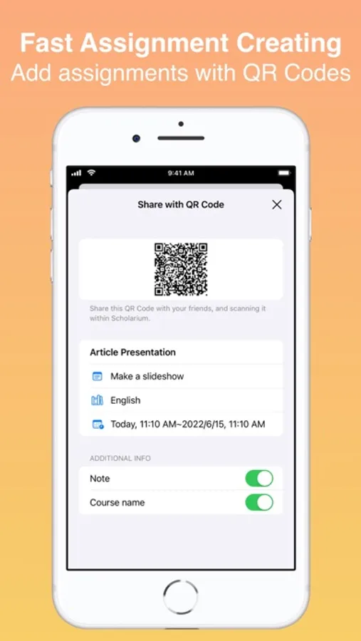 • You can quickly create assignments by scanning QR Codes of assignments you and your classmates shared with each other.