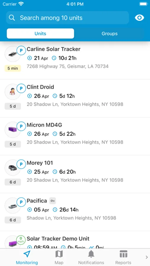 • View geofences and which units are inside