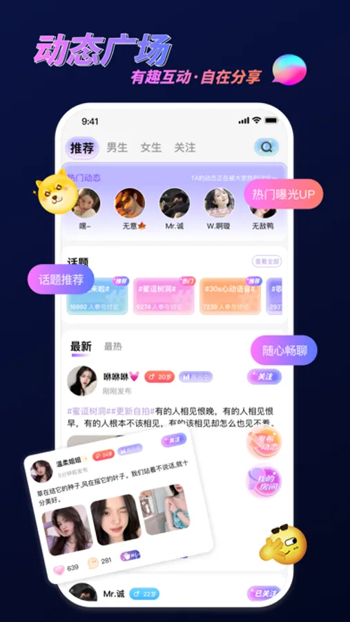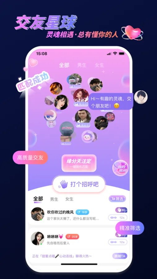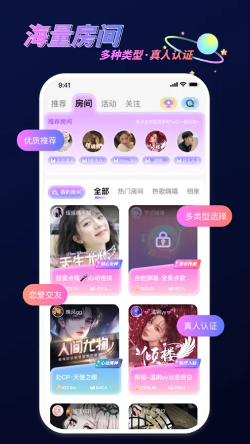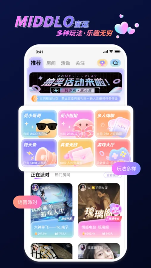 Middlo语音是一款满足恋爱,多人互动的社交APP,在这里大家可以寻找结识到更多志同道合的玩伴,让你遇到最钟意的那个Ta,解决社恐尬聊,突破地域限制,让社交变得更加简单。 产品功能简介 多人同时在线的语音交友模式 新鲜有趣的花样娱乐匹配 丰富多彩的情感沟通