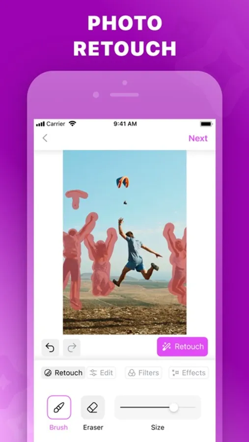 Our Photo Retouch app makes the picture editing process simple, fast, and very very easy! Don’t spend countless hours trying to give your pics a clean look. Polish them to perfection with our Photo Retouch object remover and crop out any objects in just 1 click. So easy!