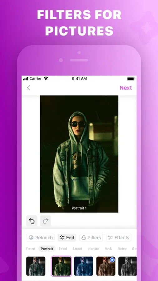 - Awesome filters: apply cool effects to edited photos and make them look WOW!
