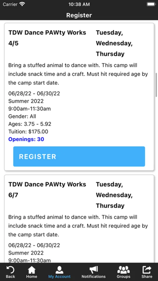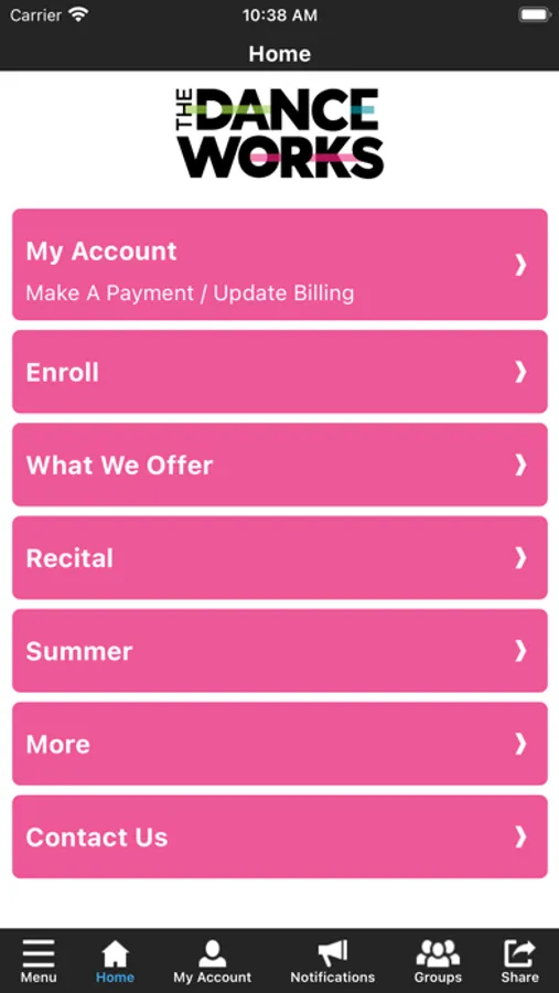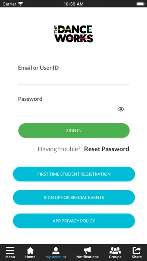 The Dance Works NE app allows you to manage your account with ease, register for classes, parties, and special events. You'll also receive important notifications about class changes, closings, registration openings, special announcements, and upcoming events.