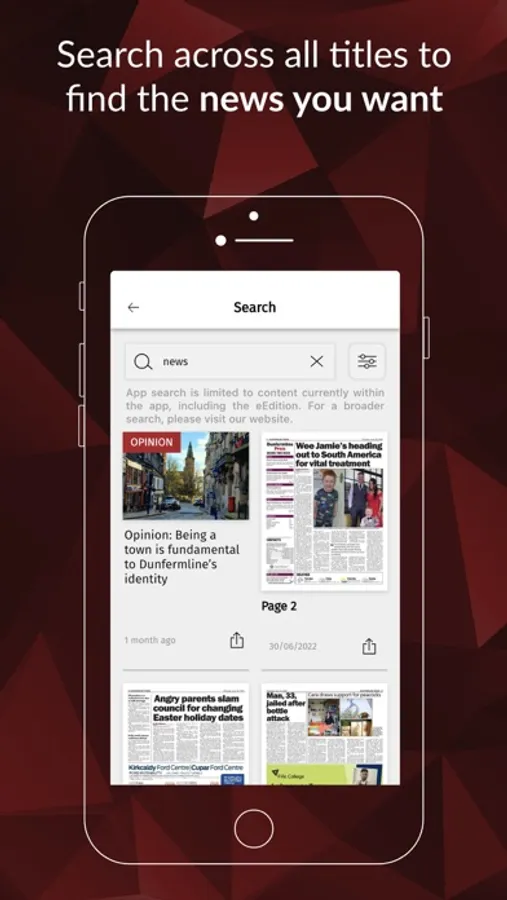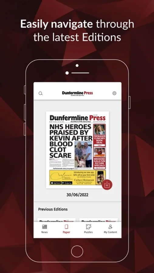 The Dunfermline Press app is the best way to keep up to date with all the breaking news, sports and events in Dunfermline and gives you the following great features…