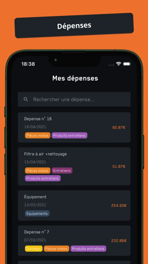 Tu peux ajouter et catégoriser tes dépenses , et ajouter tes factures , dans le but de s'y retrouver financièrement et de pouvoir anticiper les dépenses futures. En cas de cession de votre véhicule à un autre utilisateur de EMX retrouvera tes factures liées aux entretiens.