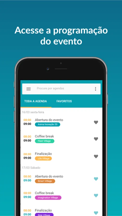 Com o app você pode montar sua agenda personalizada, definindo e organizando as atividades que pretende participar.