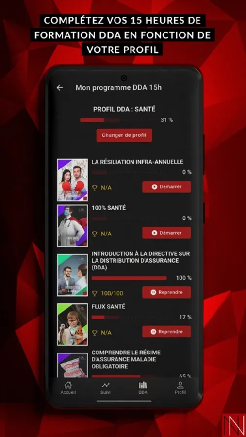 Ce n'est pas tout ! Complétez vos 15 heures de formation DDA directement avec l'application ANNIE à l'aide de programmes spécialement conçus en fonction de votre profil. A votre rythme, vous pourrez visionner divers parcours de formation au rythme de votre choix.