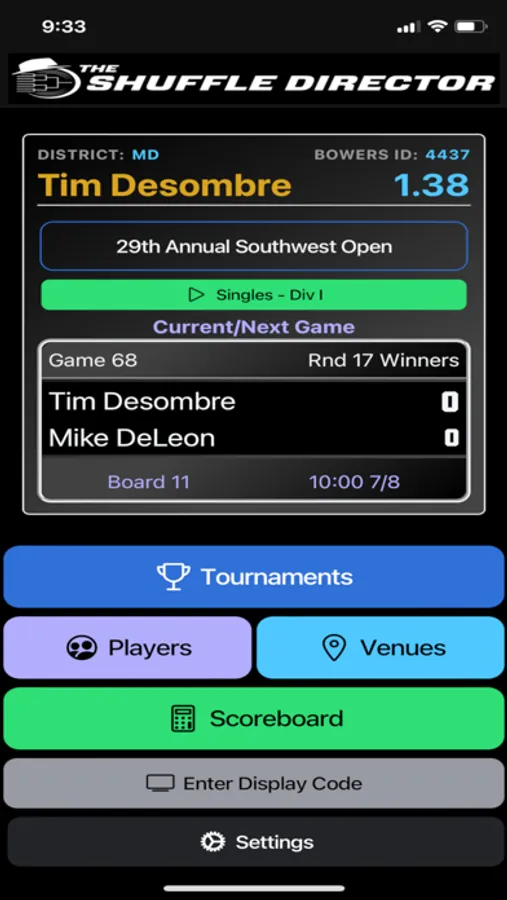 The TSD Tracker is the mobile companion app to The Shuffle Director website built exclusively in support of Table Shuffleboard. On the tracker users can easily view ongoing tournaments with live scoring and results, search for players or venues and utilize a free scoreboard. Tournament Directors can also leverage the scoreboard's capabilities to automatically upload results to The Shuffle Director to help streamline tournament management.