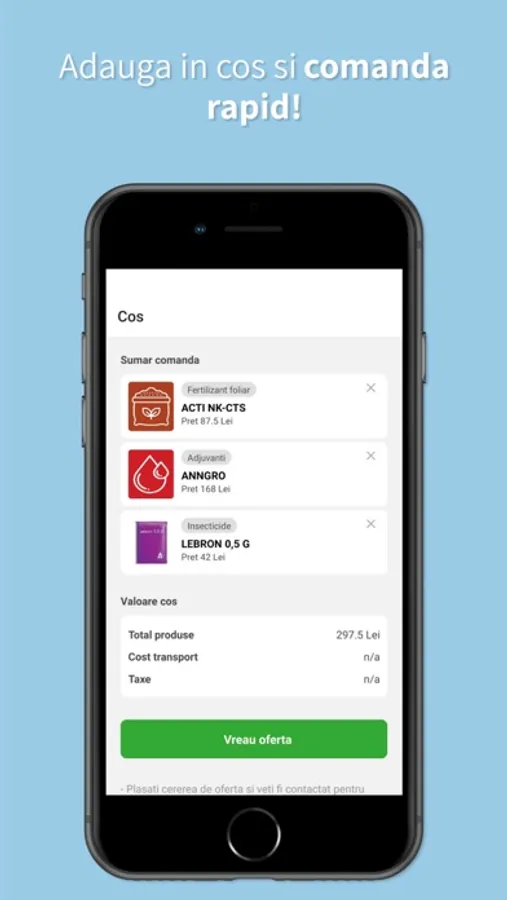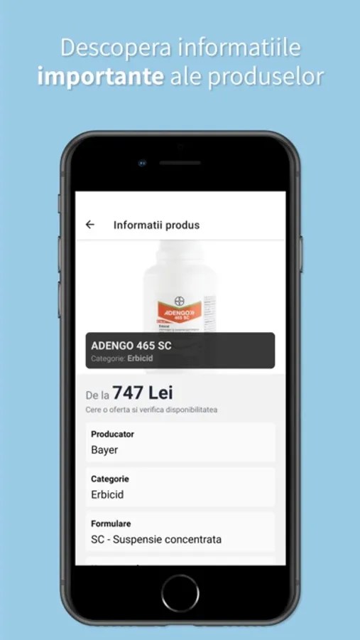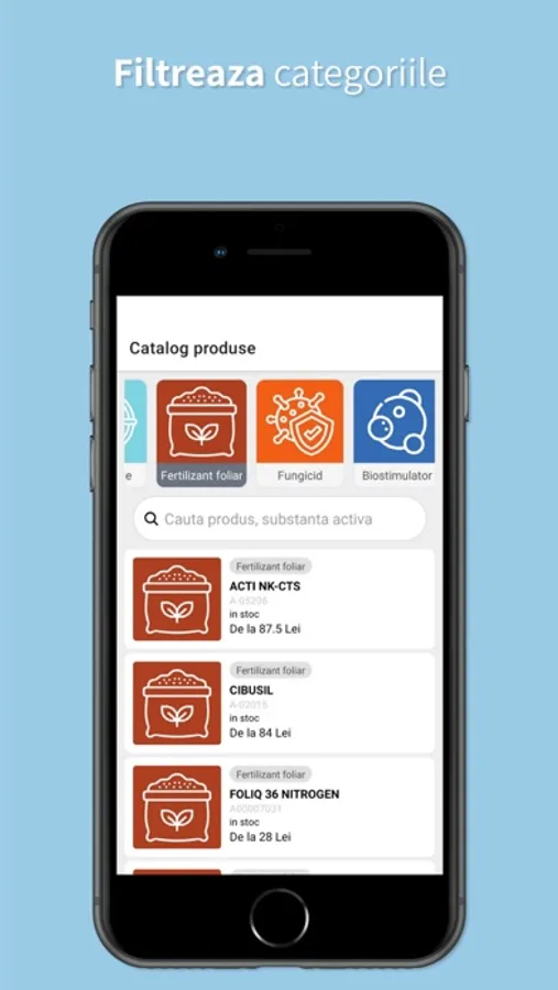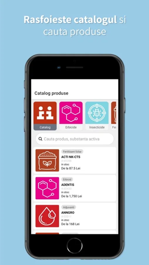 Agrii Codex+ furnizeaza detalii despre fiecare produs in parte, oferind si posibilitatea cautarii produsului in functie de denumire, categoria din care face parte substanta activa sau cultura. Mai mult, in Agrii Codex+ gasiti si pretul de comercializare al produsului, dar si optiunea de a face COMANDA la produsul dorit. Apasand butonul COMANDA, veti fi pus in legatura cu reprezentantul Agrii din zona agricola din care faceti parte.