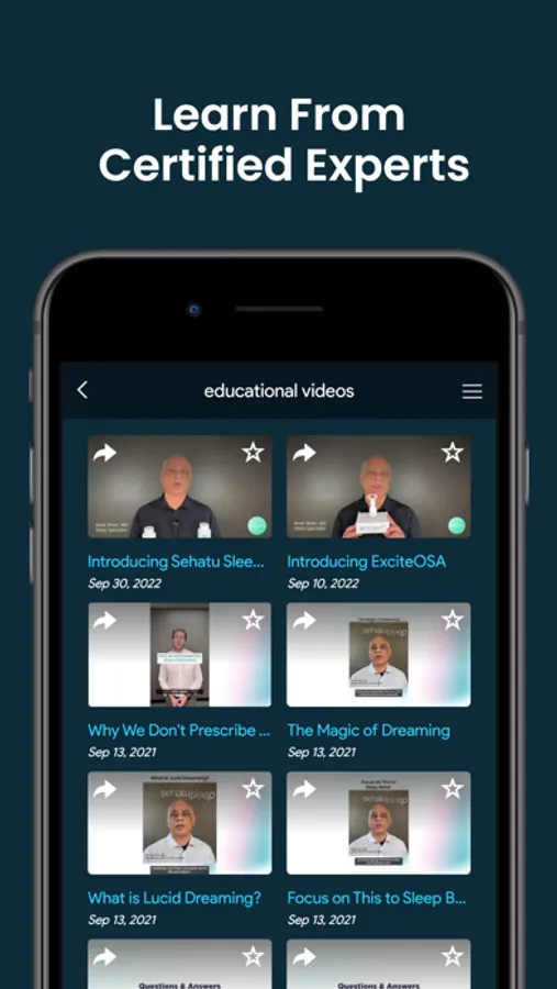 The app provides free educational resources featuring certified experts in the form of educational videos, meditation audio, and sleep quizzes.
