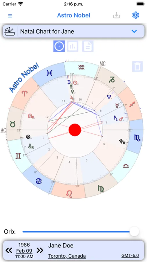 With Astro Nobel you can access all of your astrology charts, and also family and friends charts. It includes the Natal chart, Transits, Solar and Lunar return, secondary progressions and synastries; you can also add the chart of any life event for a person and accessing the transit dates for any planet in your natal chart.