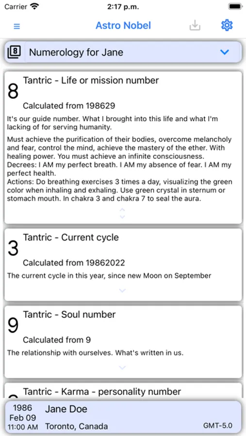You can acces Numerology for any person you create in the app; the numerology report is based on Tantric Numerology for the Name and also for the birth date.