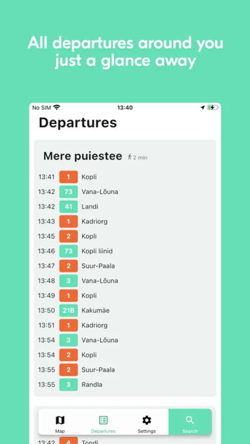 - Use your location to show stops and departures around you with 0 clicks.
