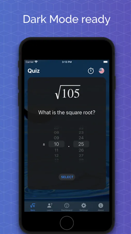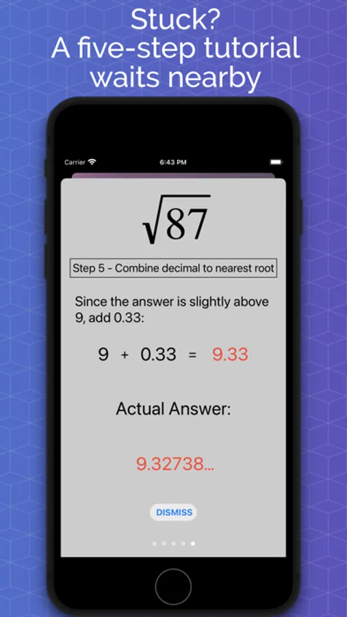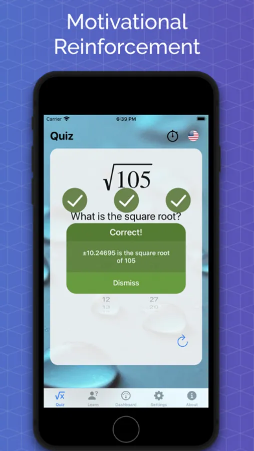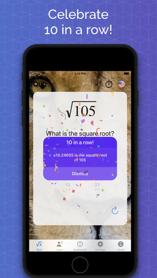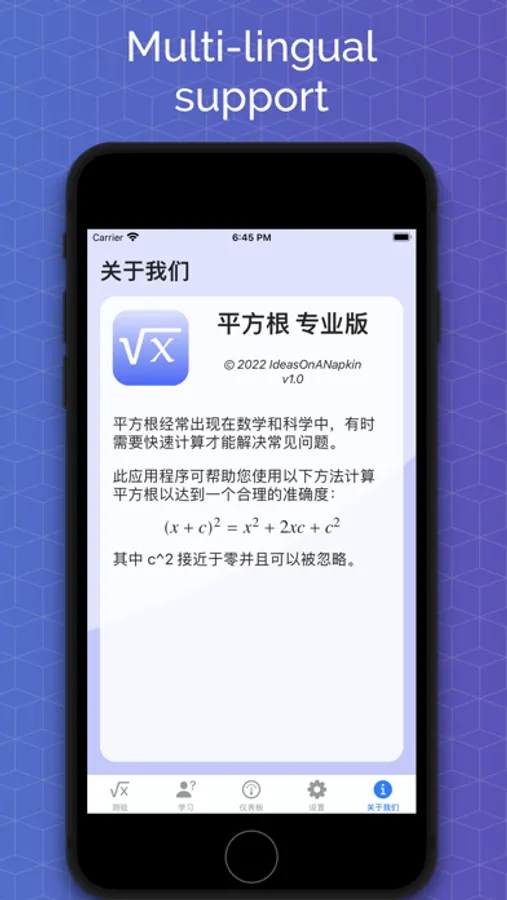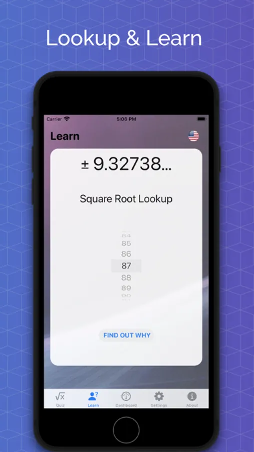 This app teaches you mentally calculate square roots to reasonable accuracy (2 decimal places). Switch easily between English, Spanish, French, German & Chinese (Mandarin). Fully internationalized numeric system.