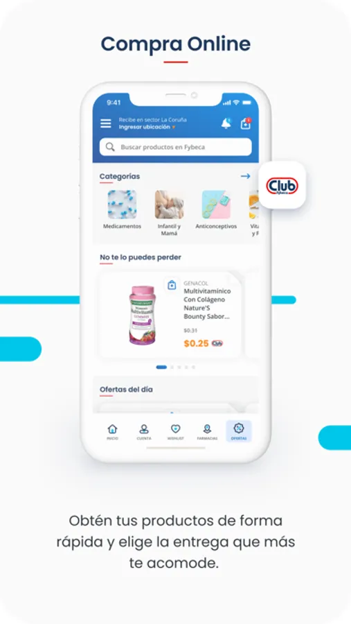 Compra rápido todos tus productos en la App de Fybeca y accede a los descuentos exclusivos por ser parte del Club. Elige la entrega con despacho a domicilio, haz seguimiento a tu pedido y repite una compra fácilmente desde Mi Cuenta.