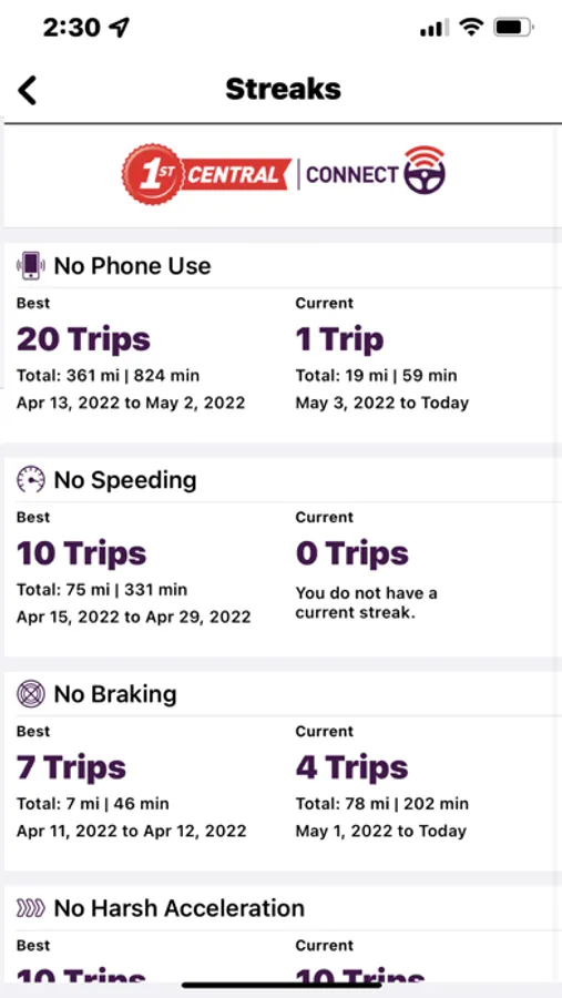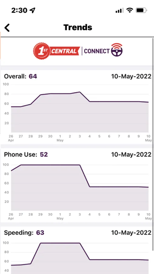 1st CENTRAL Connect gives you feedback about your driving, helping you become a safer and better driver.