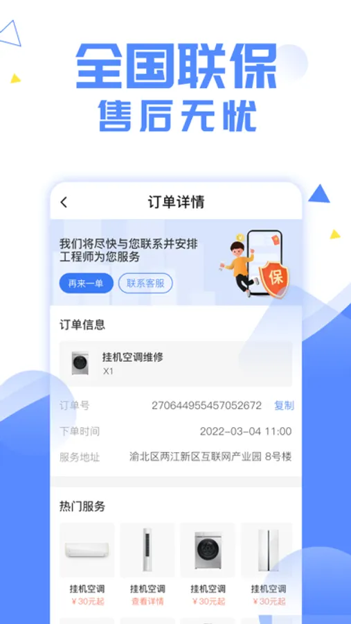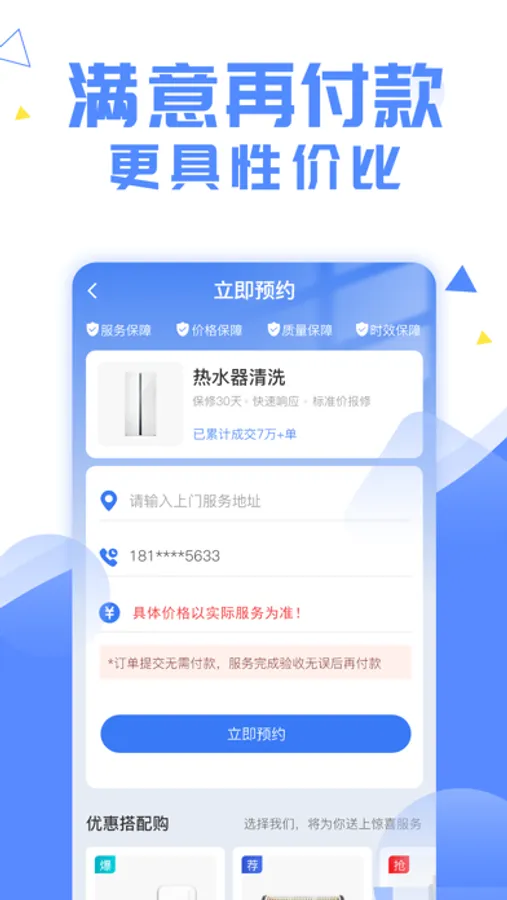 用户在APP上进行预约,全国覆盖2200+,附近师傅极速上门;