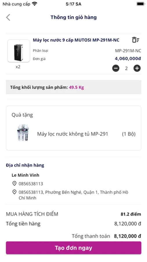 • Tạo lập và quản lý các đơn hàng một cách tiện lợi,