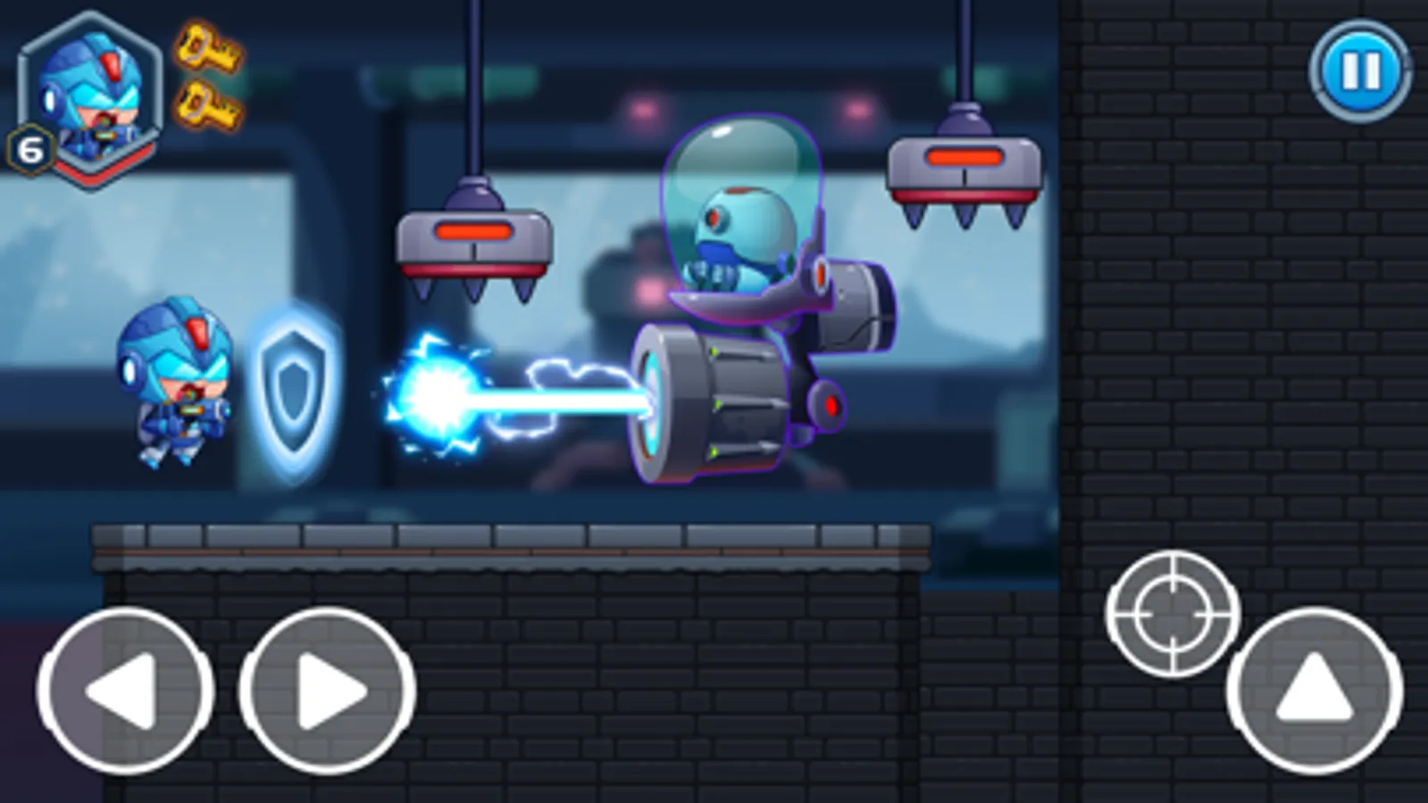 If you are fans of the 2D platformer genre will appreciate the classic mechanics and balanced physics of Cyber Hero, object movement, traversal on moving platforms, jungle adventure, hidden tunnels, searches for secrets, star collection, and an endless jumping quest in the name of love.