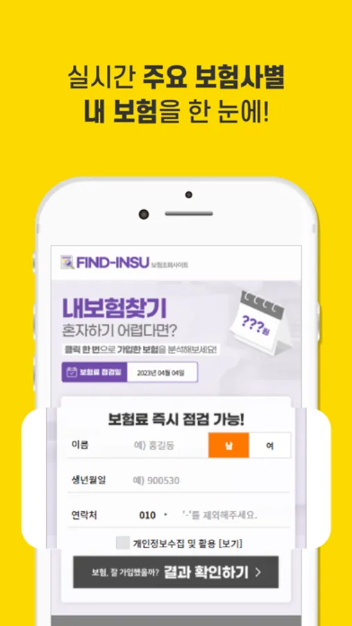 더 쉽고 빠른 내 보험 조회 서비스를 경험해 보세요. 공인인증서 등 번거롭고 복잡한 인증 절차를 절대 요구하지 않습니다. 간단한 정보 입력만으로 가입내역부터 보험료까지 한눈에 확인하실 수 있습니다.