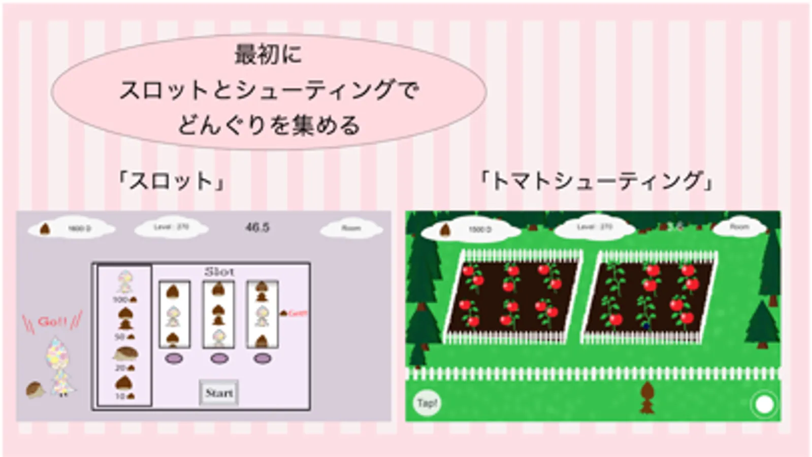 「スロット」「トマトシューティング」「どんぐりタップ」