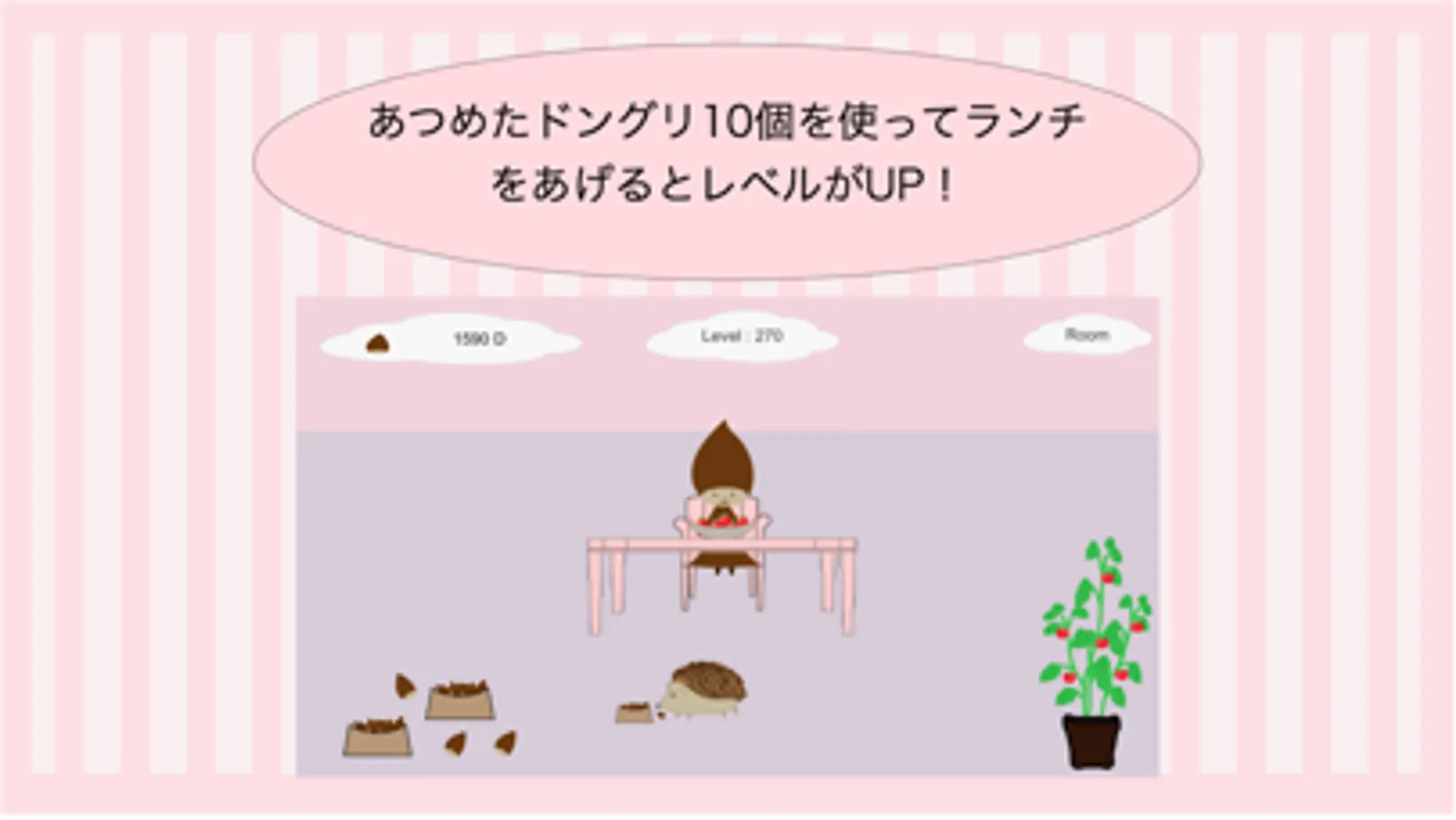可愛いお部屋と女の子とハリネズミに癒されるゲームです
