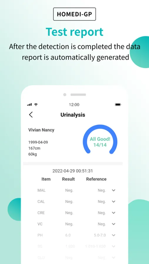 Doctors or nurses, etc., can use 「Homedi-GP」 to manage patients, quickly review patient cases, conduct rapid diagnosis and treatment analysis of urine routine test results, manage test records, and provide auxiliary reference for diagnosis and treatment