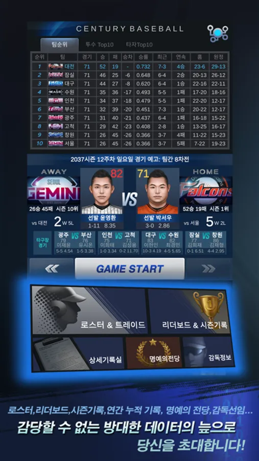 3. 선발오더나 작전 등 현장의 운영에 깊게 개입하길 원하시는 분, 년단위의 빠른 시뮬레이션 진행을 원하시는 분들은 이 게임과 맞지 않을 수 있으니 신중히 접근하시기 바랍니다.
