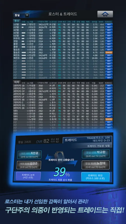 3. 순발력을 요구하는 조작, 골치아픈 로스터 조정 보다는 여유롭게 데이터를 읽는 것을 즐기시는 분