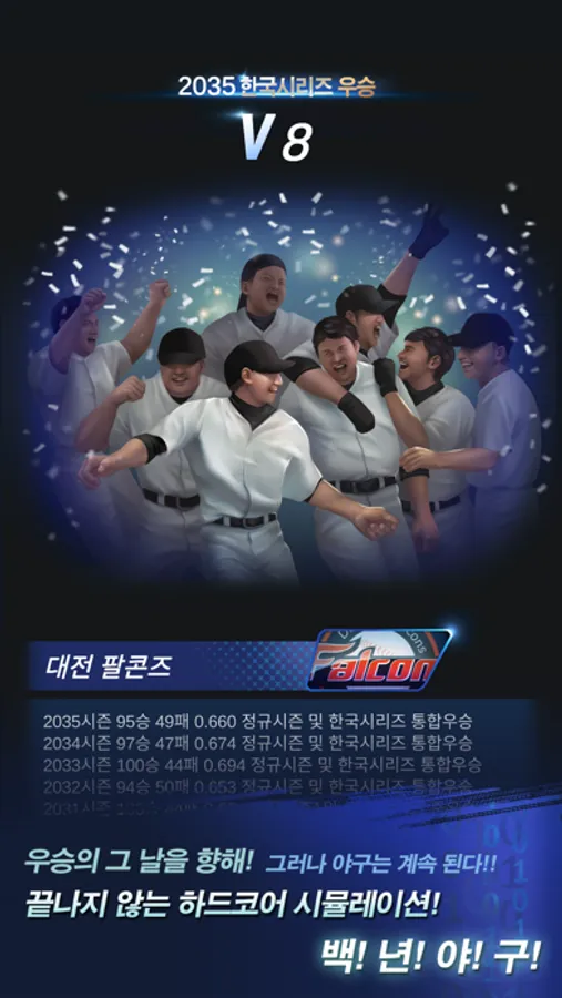 1. 이 게임의 목표는 유저의 플레이 성향에 따라 다양합니다. 매년 우승하는 왕조의 건설이 목표일 수도 있고, 명예의 전당이나 영구결번 선수를 많이 만들어 내는 것이 목표일 수도 있습니다. 또는 현실과 비슷한 밸런스의 시뮬레이션을 목표로 운영해 나갈 수도 있습니다. 정답은 없습니다.