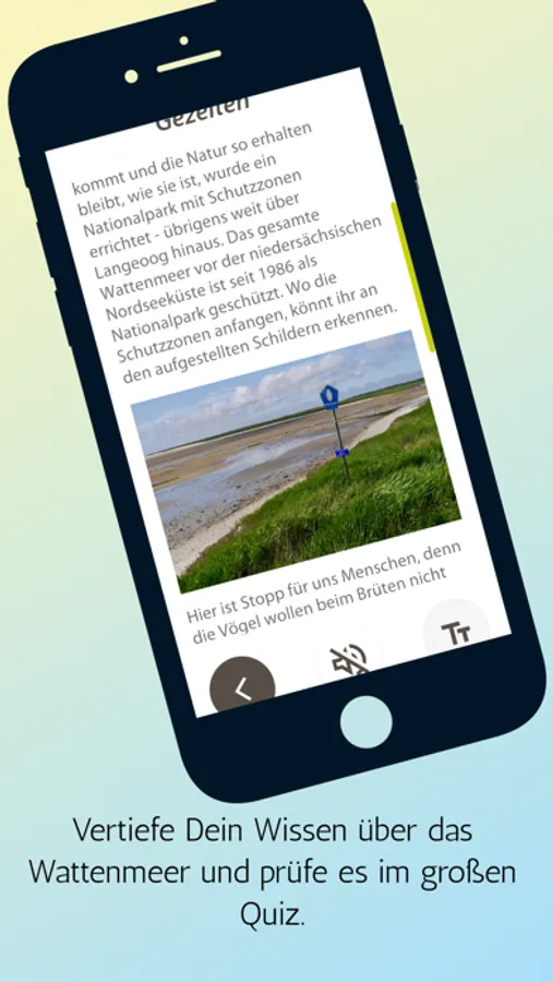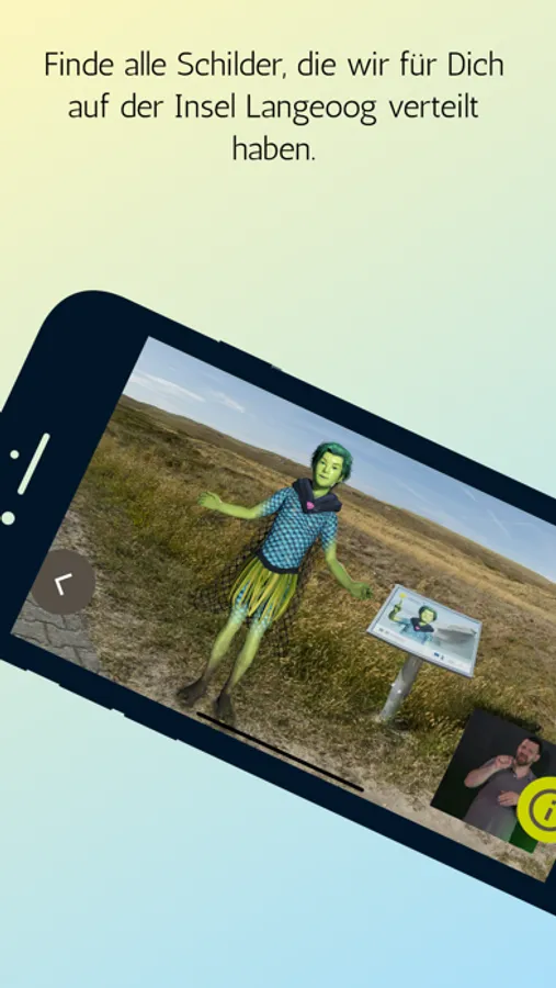 Auf der Insel verteilt stehen 8 Info-Stelen, sie gehören zu einem inklusiven Naturerlebnispfad der besonderen Art. Jede Stele hat, je nach Standort, einen eigenen Themenschwerpunkt. Aktivierst Du den Menüpunkt „Augmented Reality“ (erweiterte Wirklichkeit), werden in die reale Welt, die Du durch Dein Display siehst, digitale Figuren wie z.B. die Hauptfigur Ikke eingefügt. Je nach Deinem Standort erscheint Ikke dort, worauf Du Deine Handykamera richtest, und erzählt Dir Infos z.B., über Langeoog oder den Nationalpark Wattenmeer. Du kannst die Watt-App sogar auch woanders nutzen und Ikke überall auf der Welt herunterladen und in eine neue Umgebung setzen. Letztlich der Erzähl-Inhalt bleibt derselbe. Vielleicht gefällt es Ikke in Münster, Stuttgart, Paris – oder Deinem Klassenzimmer? Probiere es mal aus!