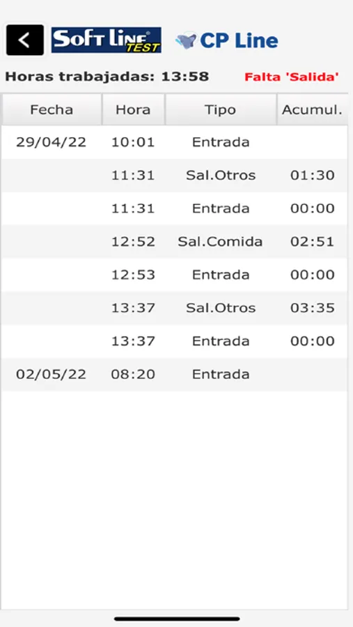 CP Line (Control de Presencia) es una solución web con APP móvil para que sus empleados puedan fichar su horario laboral en remoto o de forma presencial, con el móvil o desde web en sus oficinas. Con localización geográfica opcional y un sistema que permite conocer el estado de otros compañeros relevantes de otros departamentos (por ejemplo, quiénes están comiendo, quién no está, etc). Incluye alta y baja de empleados, listados de fichajes completos y detección de errores en los mismos.