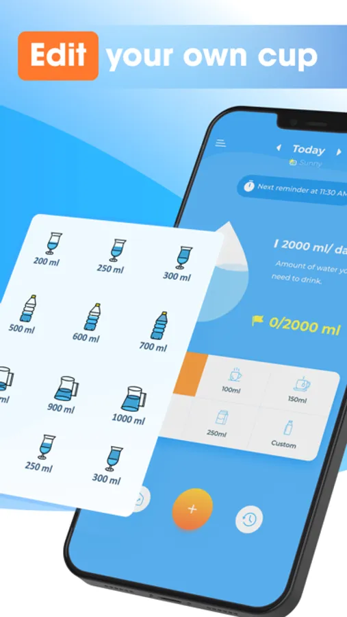 If the amount of water intake suggested by Drink water & Water Reminder doesn't feel fit for you, you can set your own goal of water per day. For example, there's a day you just stay at home and don't play any sport at all, your water intake can be lower, or on your active day, water intake can be higher than normal.
