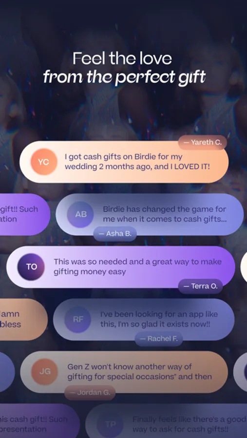 Register your next big life moment with Birdie – and get cash gifts to spend however you want. Whether it’s for your honeymoon, baby fund, or birthday registry, cash is good for every occasion. We don’t charge any fees to create your registry or receive gifts, so it’s all green from here. Share your registry via text, email, or link to your custom landing page. Your guests can send their love and you can send your thanks, all within the Birdie app.