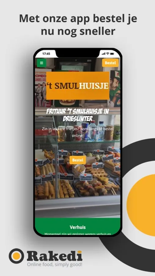 Bij 't Smulhuisje hebben we heerlijke frietjes en hamburgers. Bestel online via onze app.