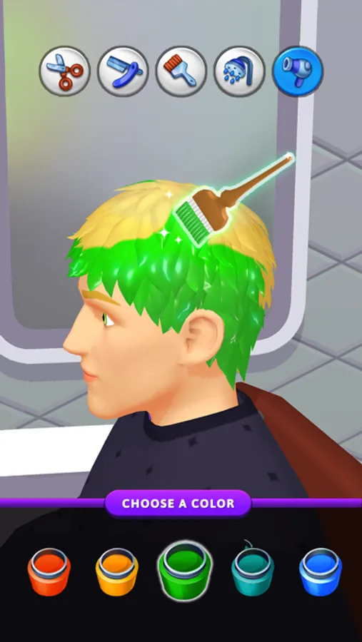 Clients will come to the barbershop with the desire to make a new hairstyle! Your task is to cut, shave, color, and style your hair with the highest quality so your client stays satisfied! If you mess up your hair, the client will leave in anger, and you won't get paid!