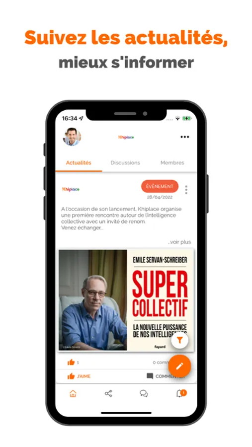 Échangez, découvrez les projets collectifs et groupes de discussion, mettez en relation et suivez les infos exclusives de Khiplace. Retrouvez les membres de la communauté et développez votre réseau dans votre nouvelle application !
