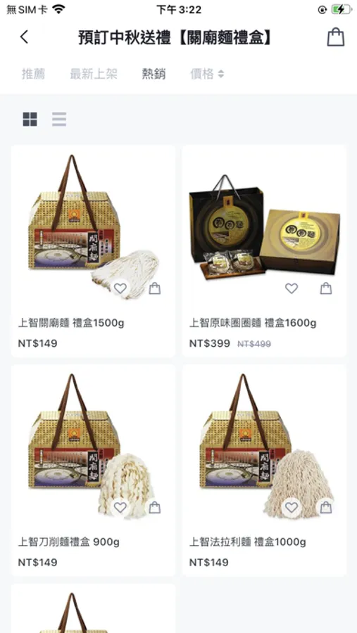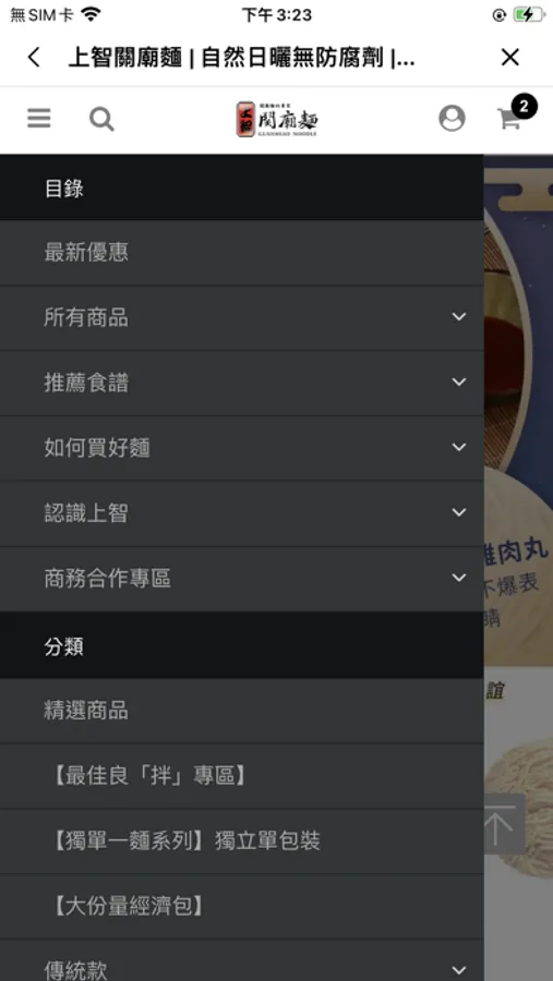 各式麵條皆有販售:關廟麵、鍋燒意麵、雞絲麵、刀削麵、圈圈麵、養生系列等;另有規格:單包裝、多入裝、手提袋、禮盒等。