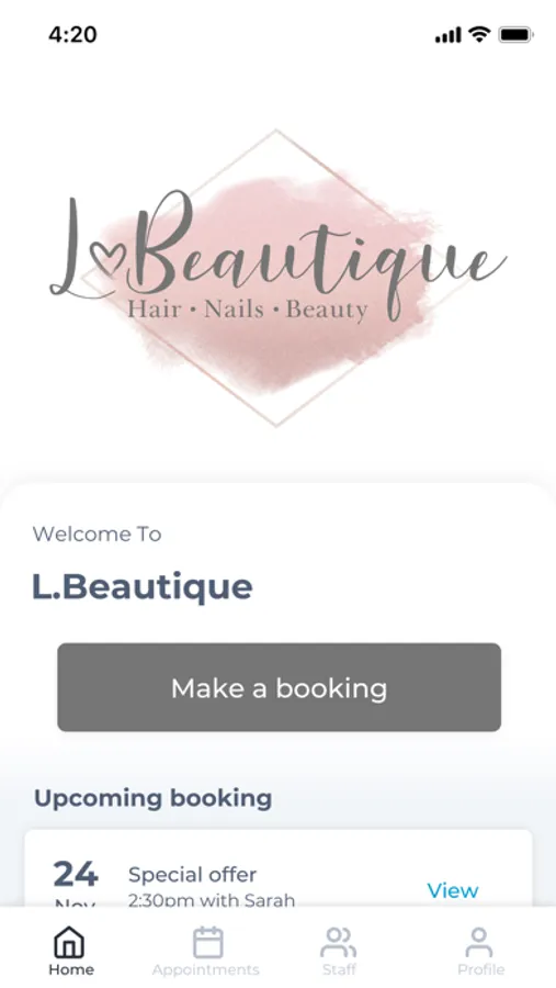 The L.Beautique app makes booking your appointments and managing your loyalty points even easier. You're just a few taps away from feeling good and looking great!