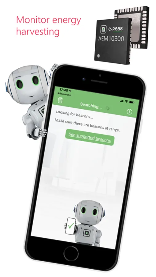 The new e-peas AEM10300 application for iOS is the first PMIC ( Power Management IC ) evaluation application dedicated to energy harvesting, using Bluetooth low energy.