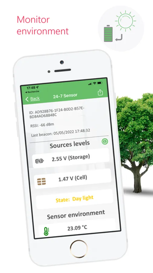 The tool is designed for OEM developers, not only to display the environmental data of the sensor node, but also the key parameters of the device :