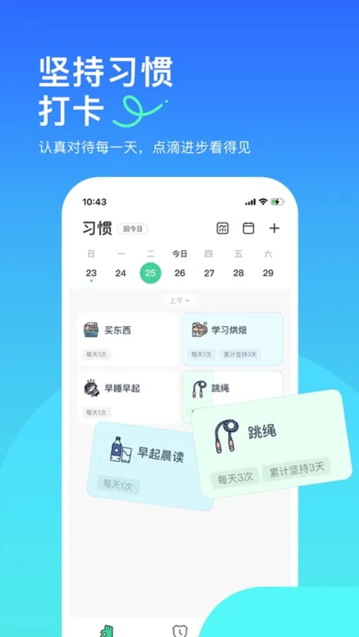 In work or in life, good habits will make us feel happier. In iHabit, habit checking is very simple, you just need to plan in advance what you need to check in every day or every week, and click on the habit card on that day. And through continuous check-in and continuous change of habits, it helps us to better manage our lives and time.